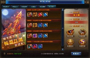 内容:开服第一天,你的等级根据当天23点天服务器记录等级为准,进行排行,请提前1小时候冲榜,排行奖励通过邮件发送,仅可获得符合条件的最高档次的奖励